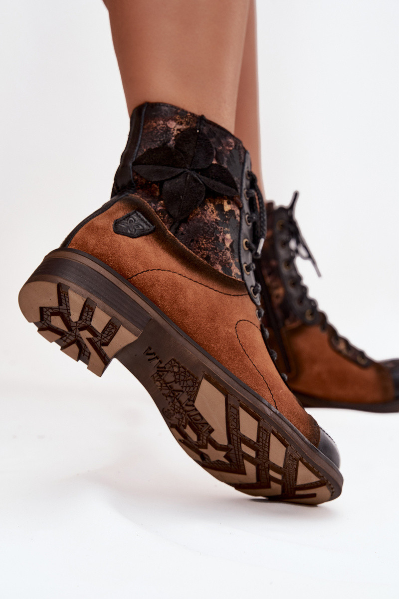 Botas femininas de couro natural com salto largo Tai turiciejka 07004-29 em marrom