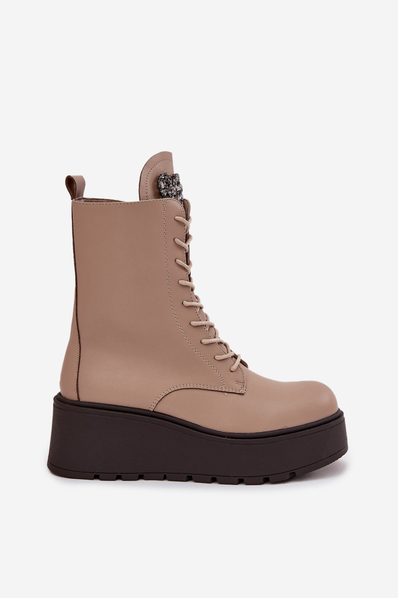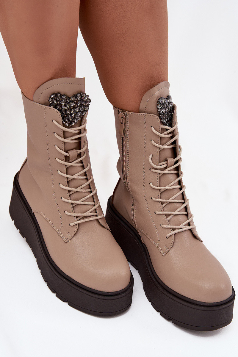 Botas de cano curto femininas de pele sintética com ornamentos forradas na cor areia Ulrika