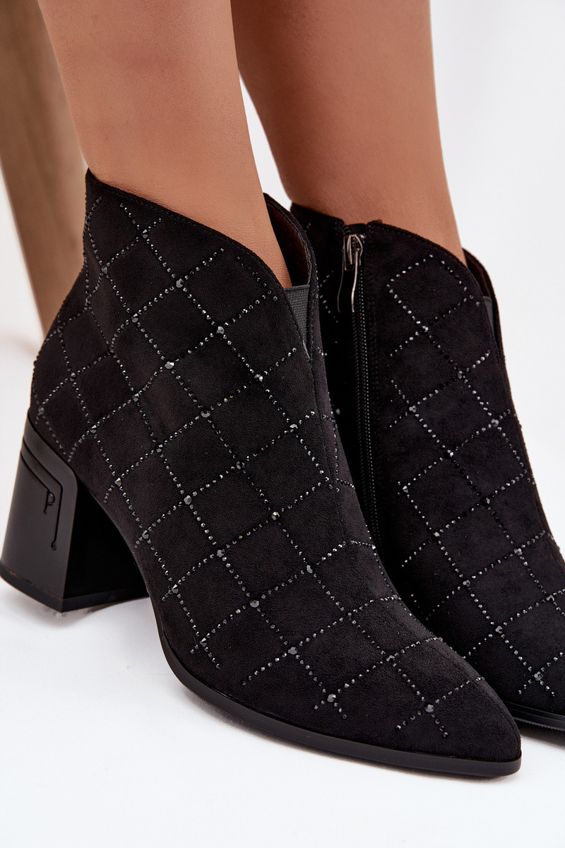 Botas femininas de cano curto com decoração D&A MR52-133 na cor preta