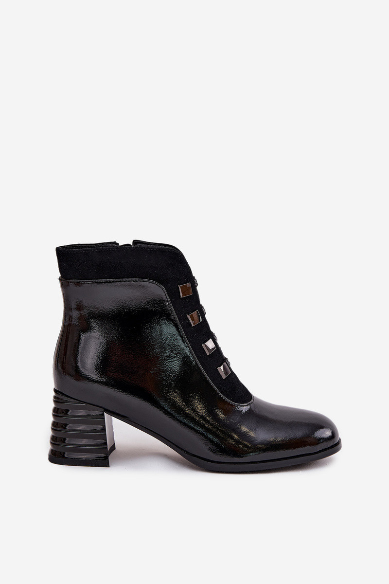 Botas femininas de pele sintética com efeito envernizado D&A MR52-144 na cor preta