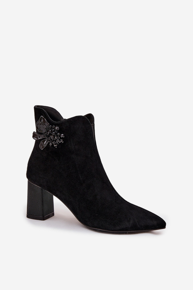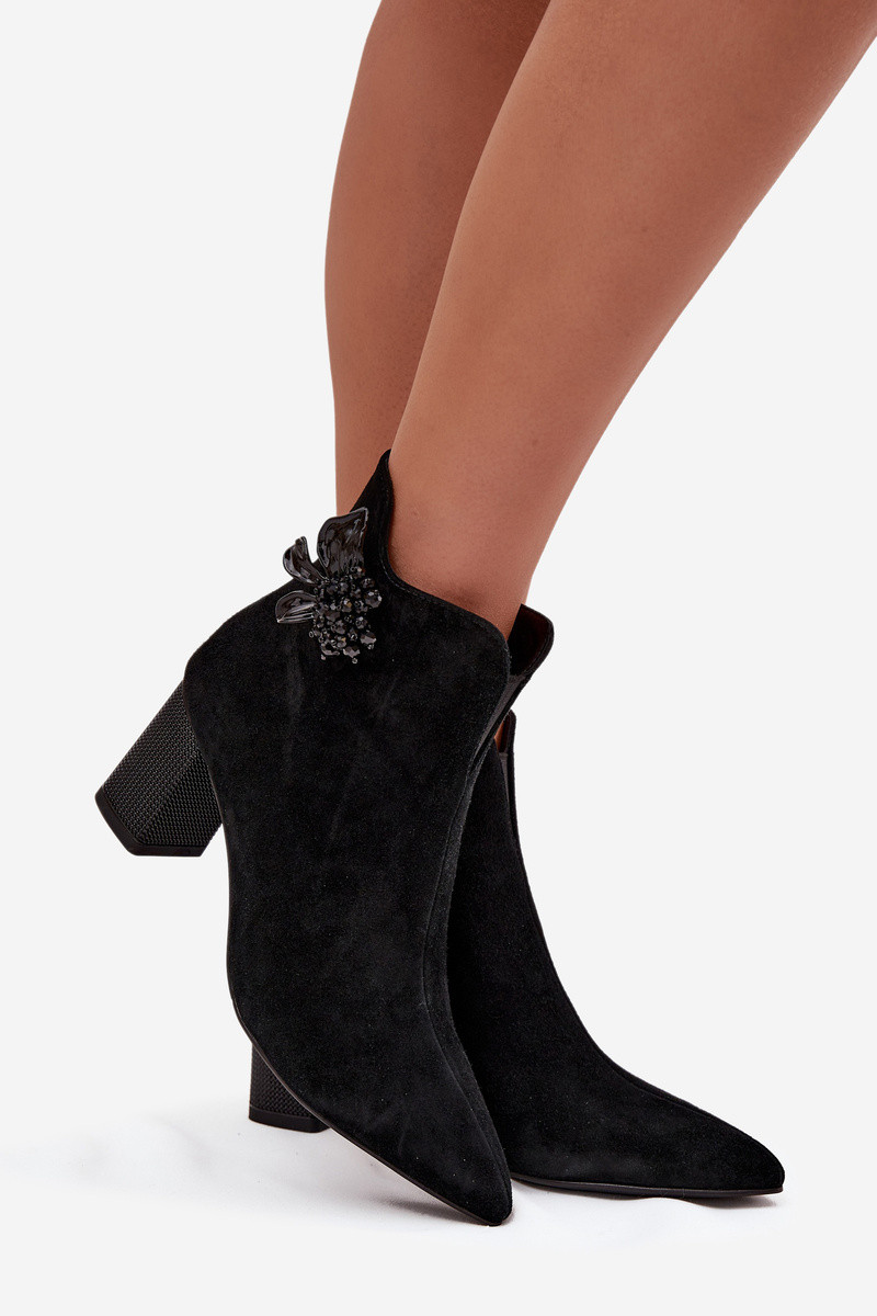 Botins femininos de camurça com ornamentos D&A CR52-686 na cor preta