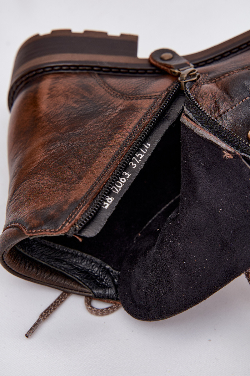 Botins femininos de couro natural com saltos largos Tai turiciejka 07063-02 na cor marrom