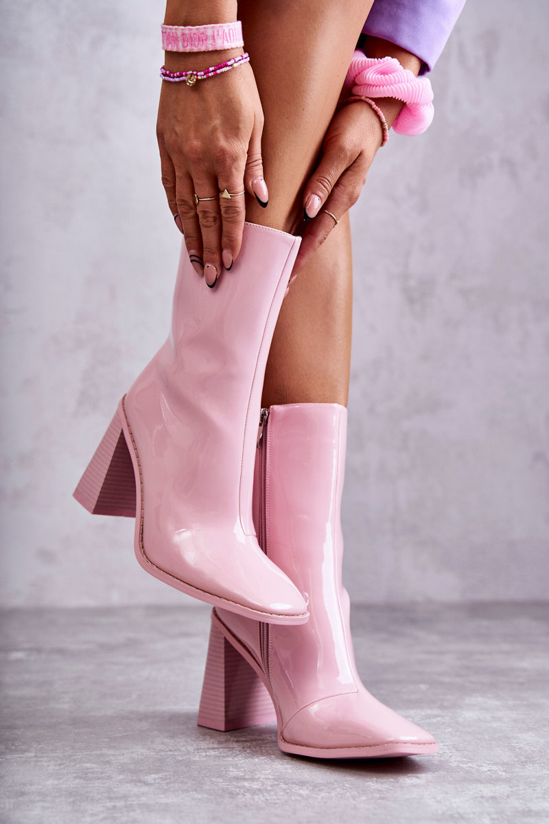 Botins femininos em verniz de cano longo na cor rosa Tai turirgit