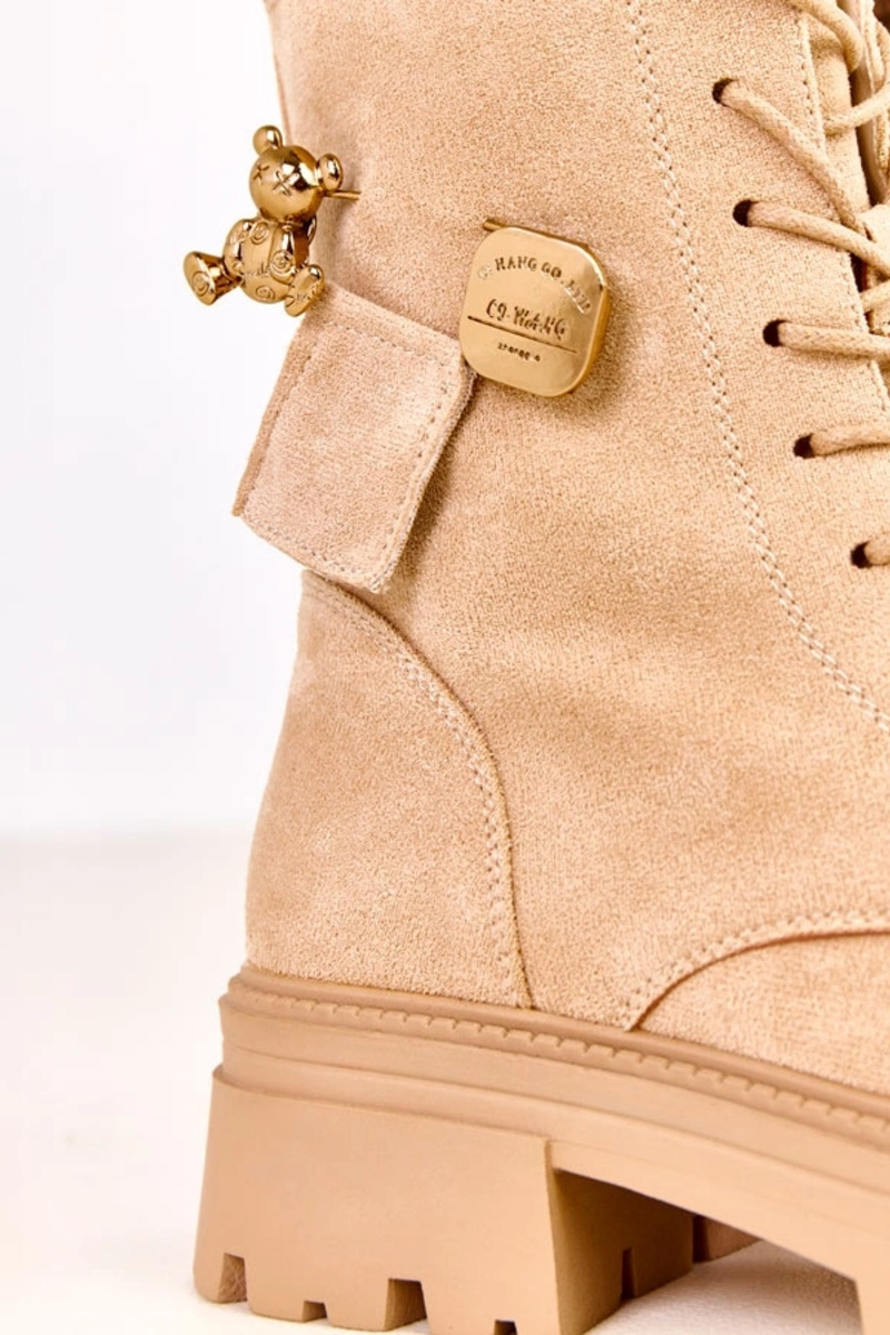 Botas de cano alto bege decoradas com ursinho e fivela Hariet