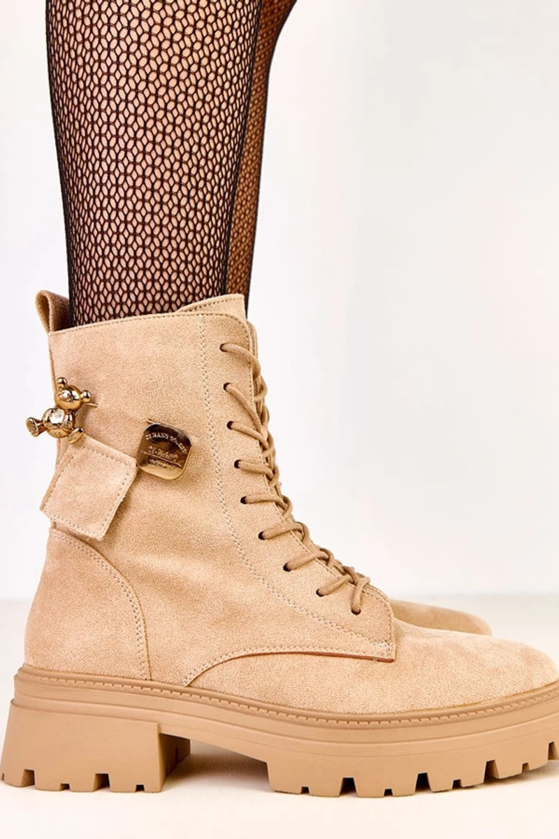 Um modelo atraente botas estilo coParaboy FemininoHabilitadoturalnego de camurçau bege...