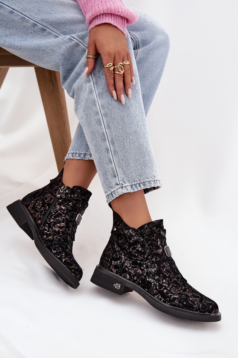 Botinhas em camurça natural com salto baixo D&A CR52-713 nas cores preta e marrom