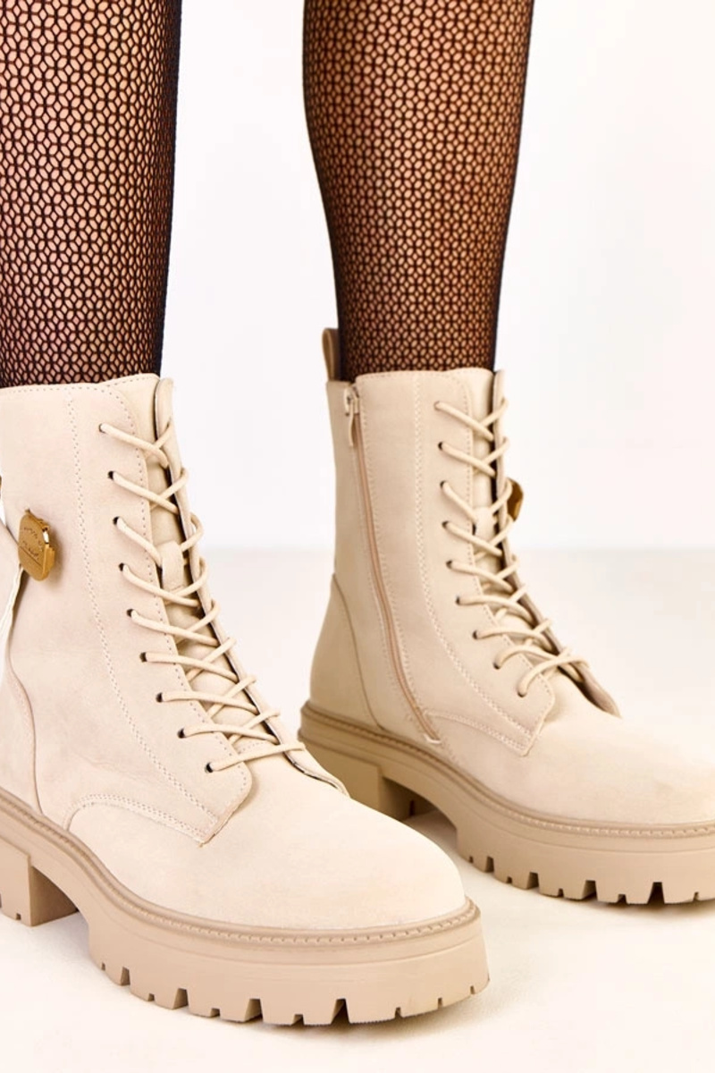 Um modelo atraente botas estilo coParaboy FemininoHabilitadoturalnego de camurçau bege...