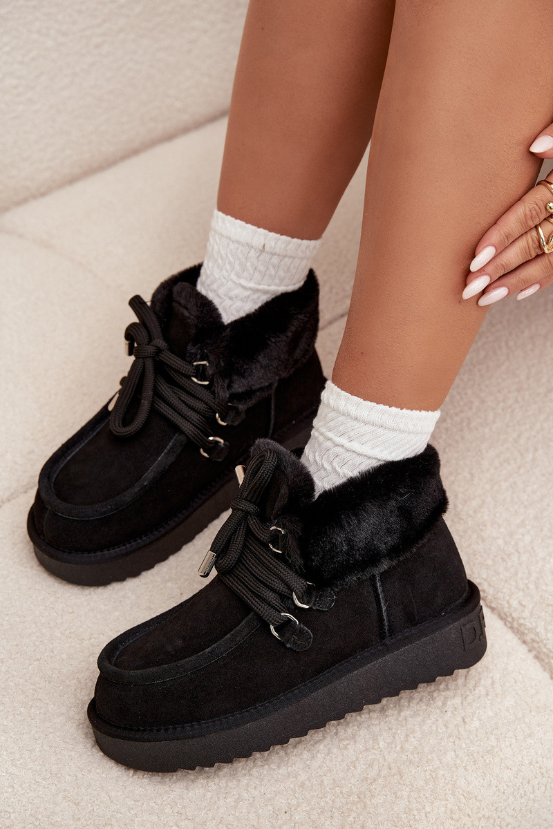 Botas de neve femininas pretas em camurça natural D.Franklin DFSH375006