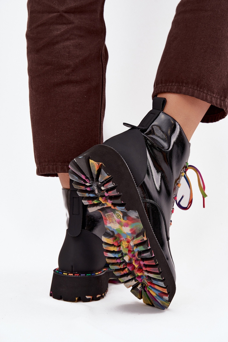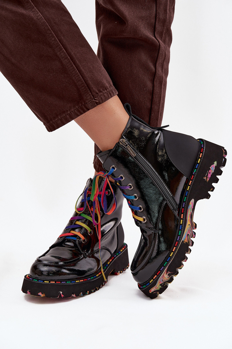 Pele com efeito verniz Botas femininas Artiker 57C0064 cor preta