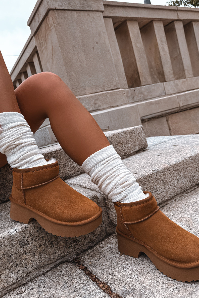 Botas de neve femininas de camurça natural aquecidas com pelagem interna, cor marrom Milora