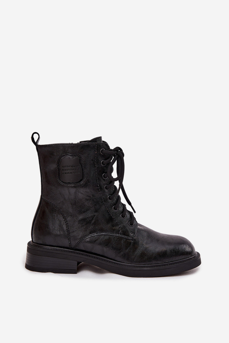 Botas de trabalho femininas de couro com detalhes elegantes Tai turiciejka K7180-01 pretas