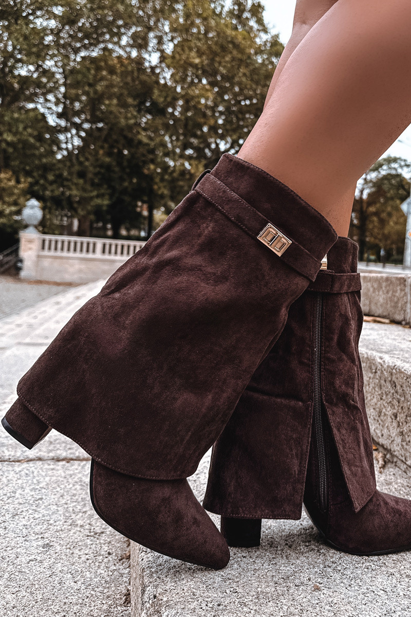 Botas femininas aquecidas com saltos decorados na cor chocolate Luvielle