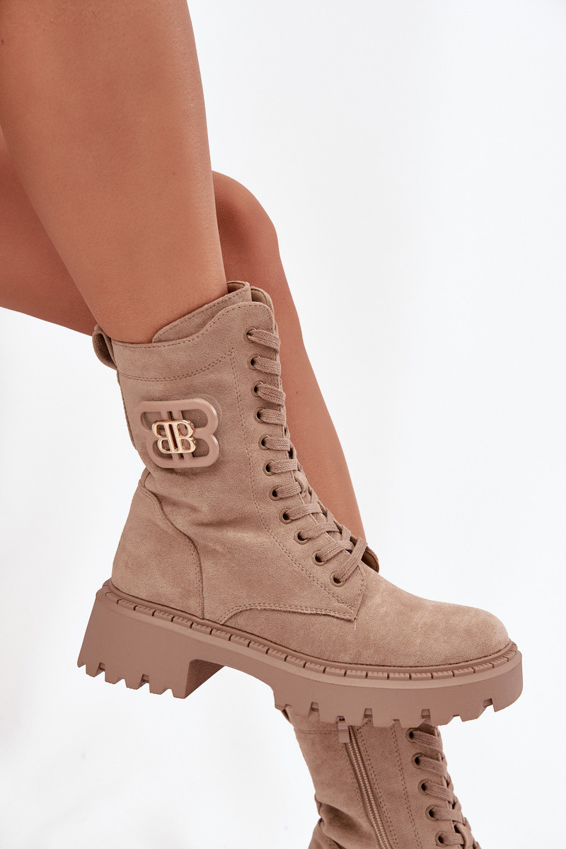 Botas femininas aquecidas com elementos decorativos na cor areia Kalindra