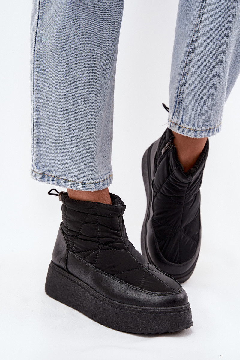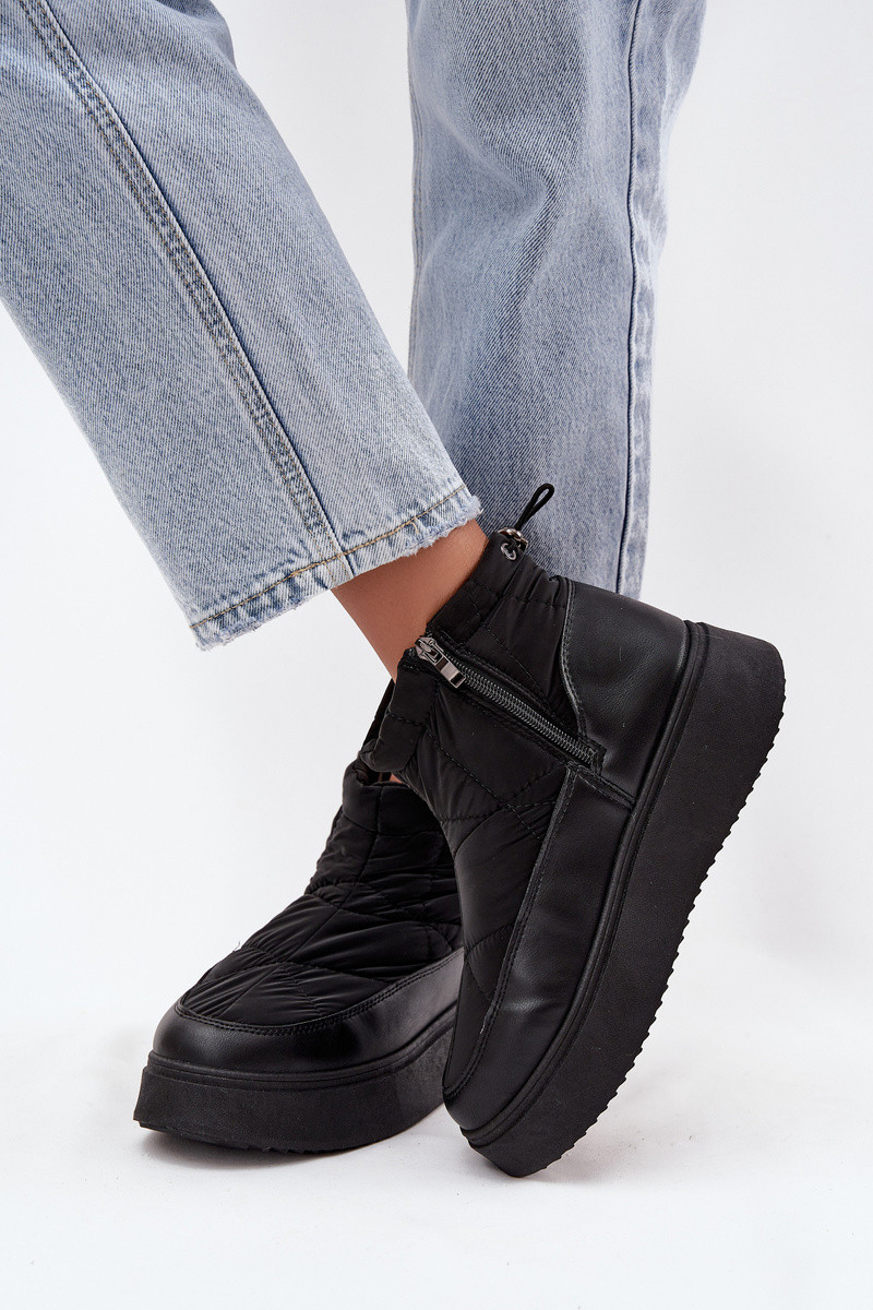 Botas de neve femininas aquecidas com plataforma e pelúcia interior cor preta Tahlira