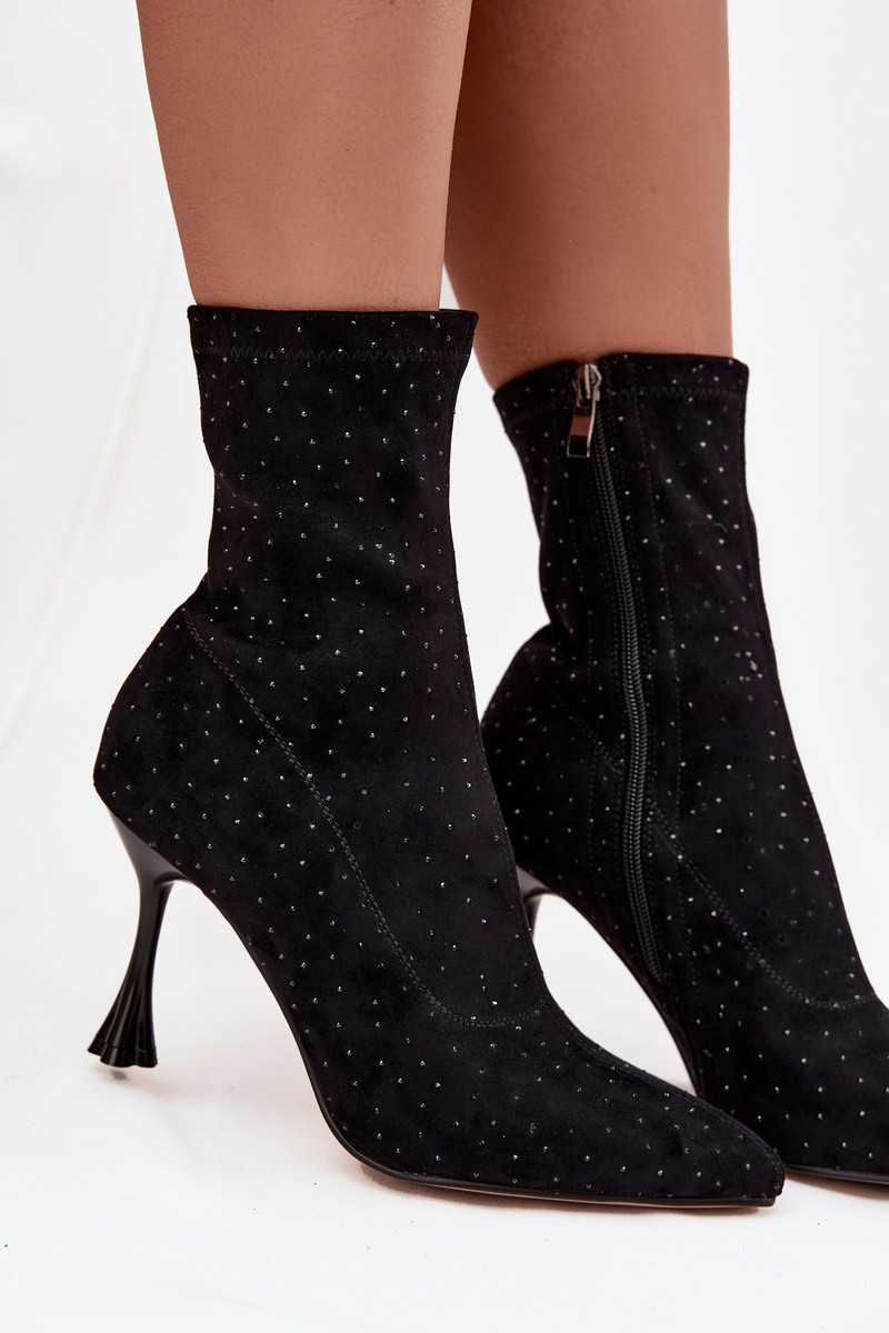 Botinhas femininas decoradas com saltos finos D&A JC52-882 cor preta