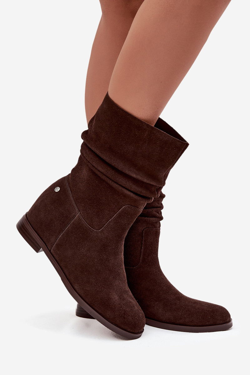 Botas femininas de camurça marrom com babados, forradas Tai turiciejka K7211-02