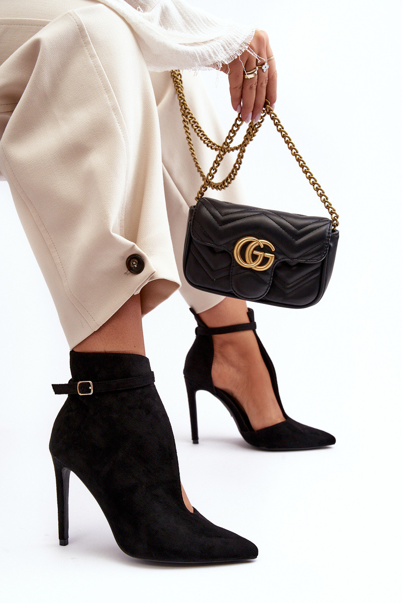 Sapatos de camurça Feminino com salto fino cor preta Amalundi