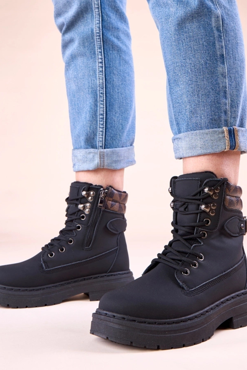 Botas femininas pretas quentes de couro sintético fosco Selio