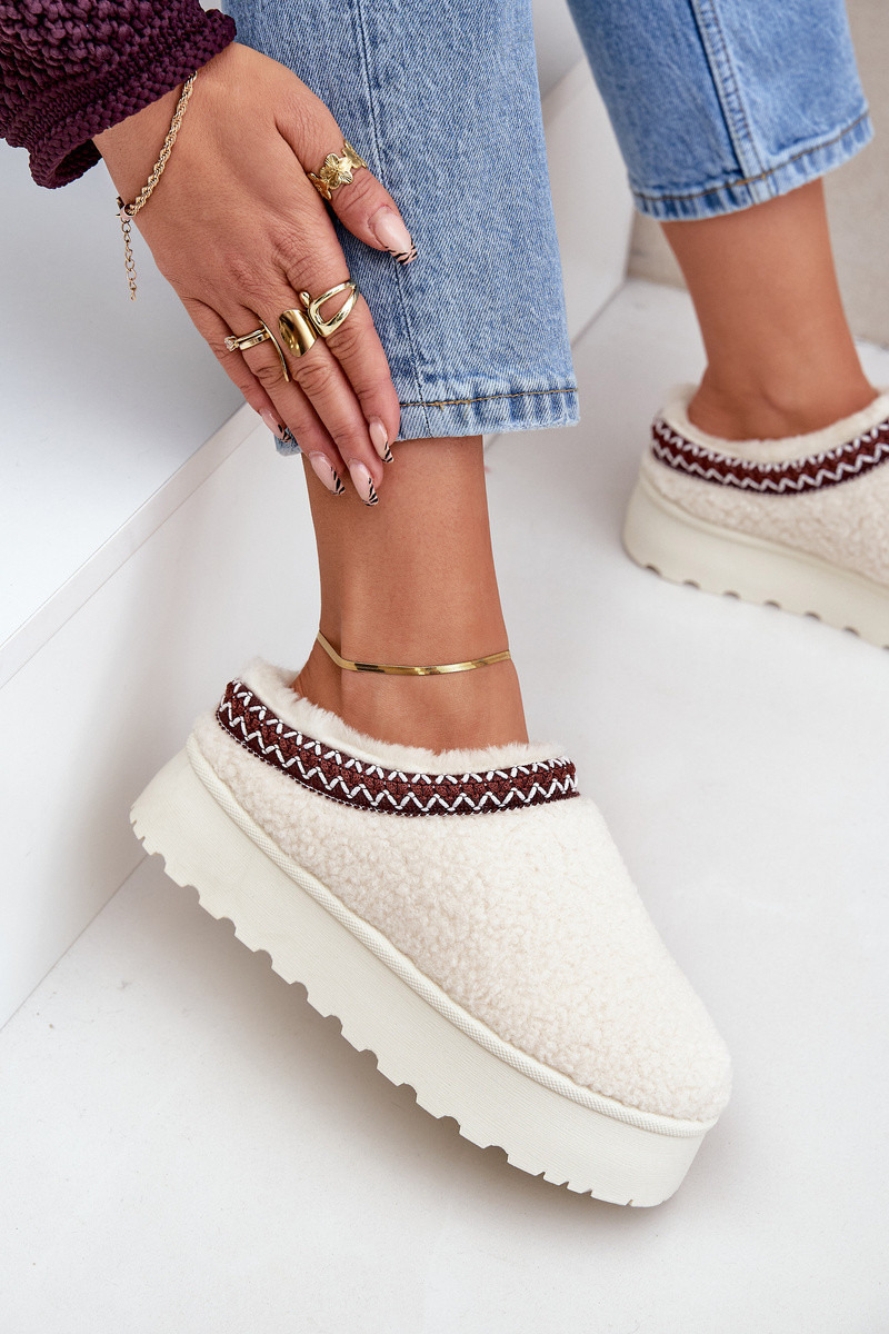Botas de neve Chinelos com uma plataforma com um casaco de pele Typu Baranek cor de marfim Ovirissa
