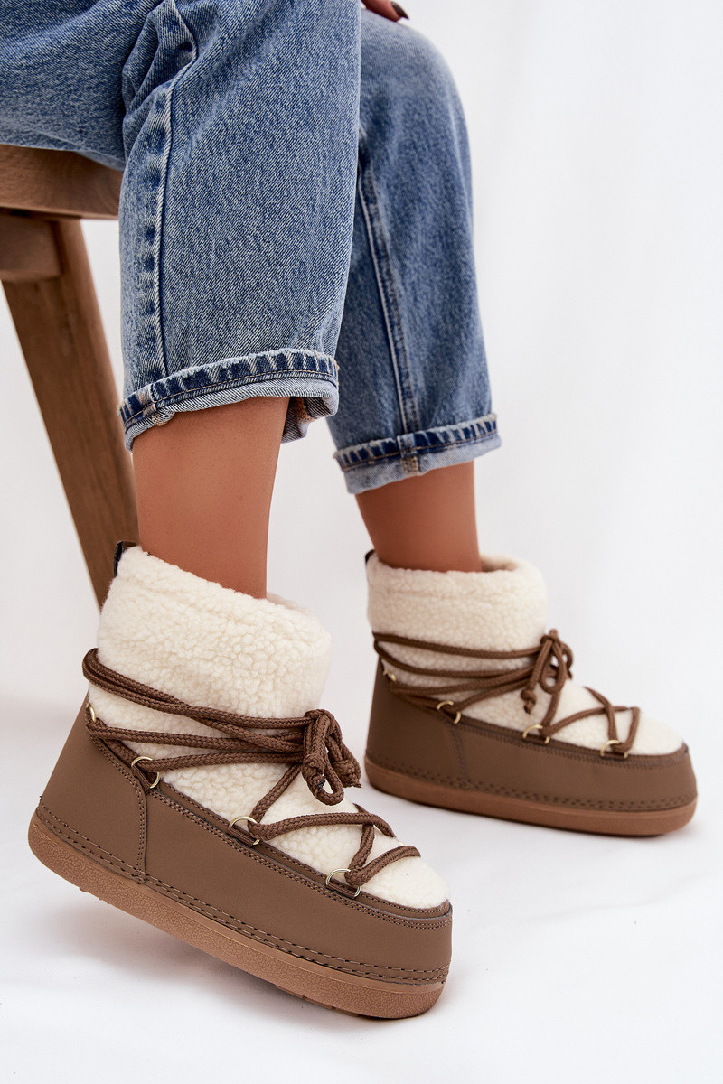 Botas femininas bege para neve com pelagem tipo Baranek e tiras Belira
