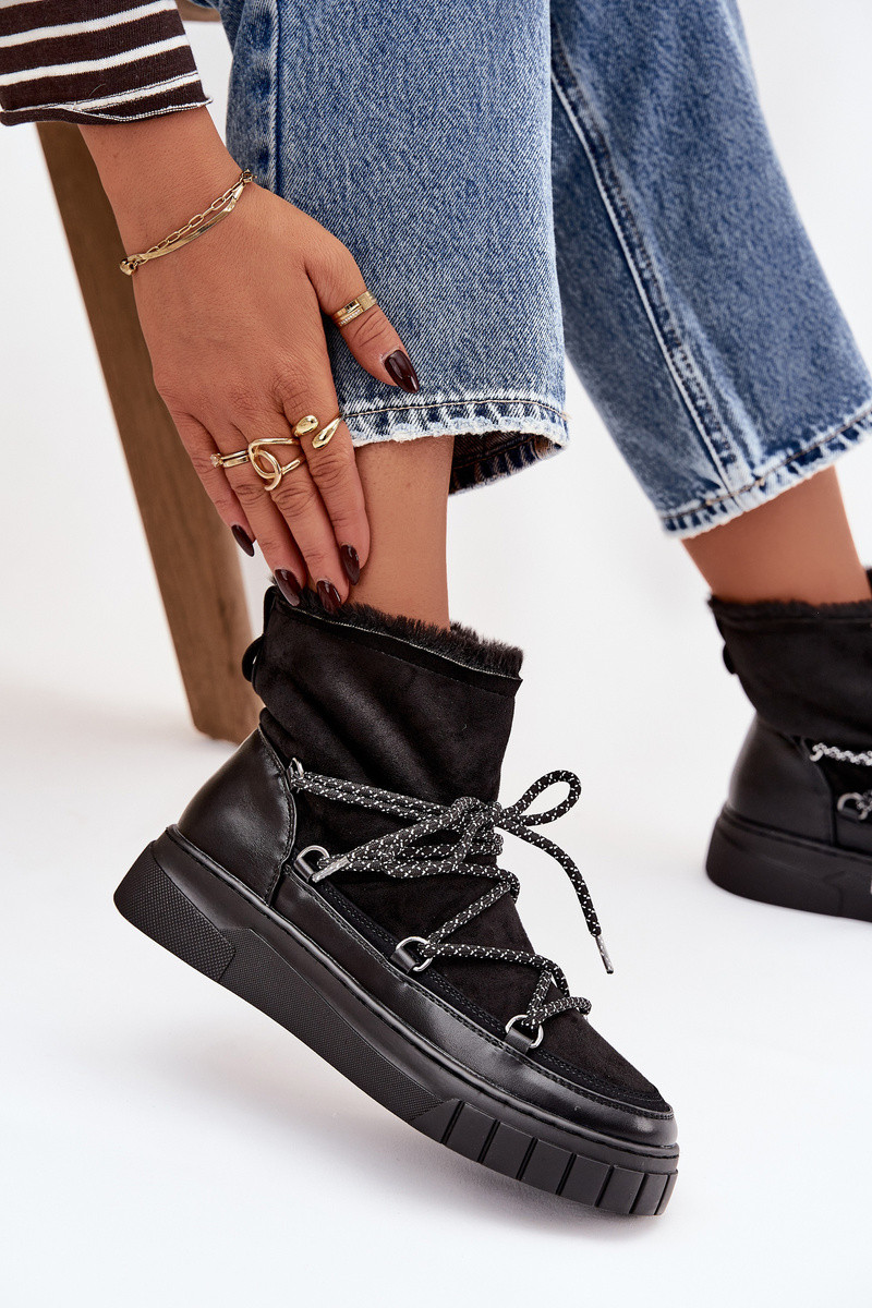 Botas de neve Feminino com detalhes elegantes cor preta Isalisse