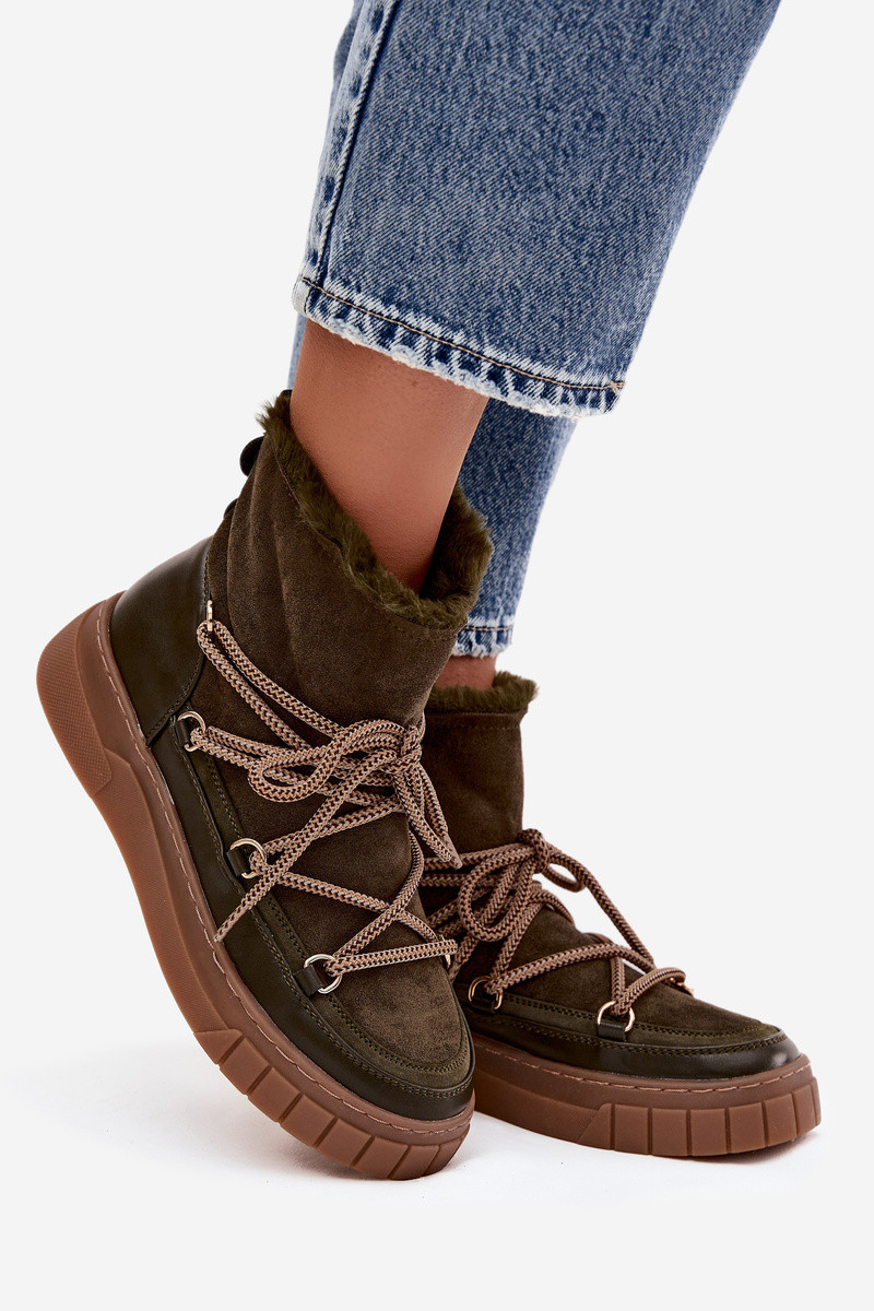 Botas femininas khaki para neve com detalhes estilosos Isalisse