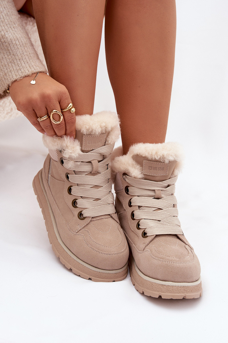 Bota de neve em camurça bege com plataforma e pele Big Star SS274371