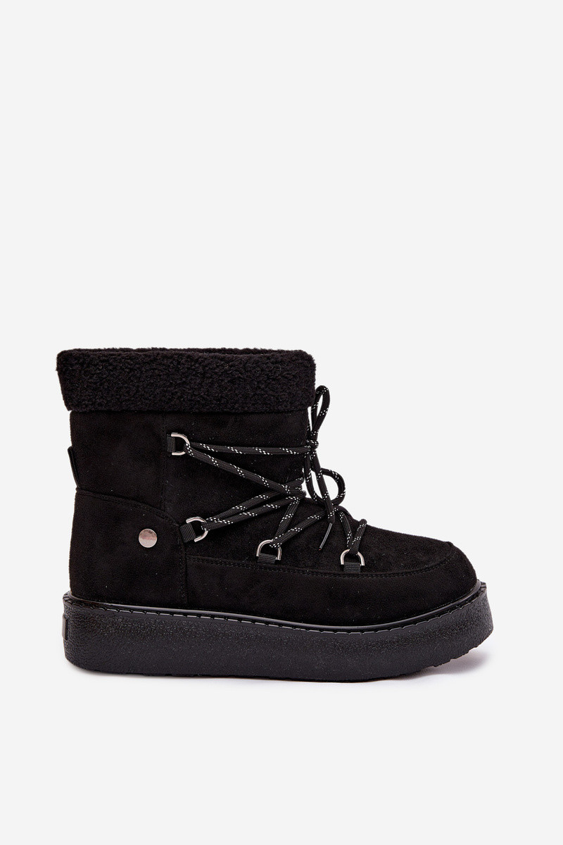Bota de neve feminina preta com plataforma e detalhes estilosos Roselya