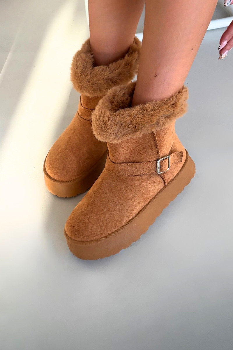 Botas de neve Feminino com uma plataforma com fivelas e um casaco de pele cor marrom Jesella