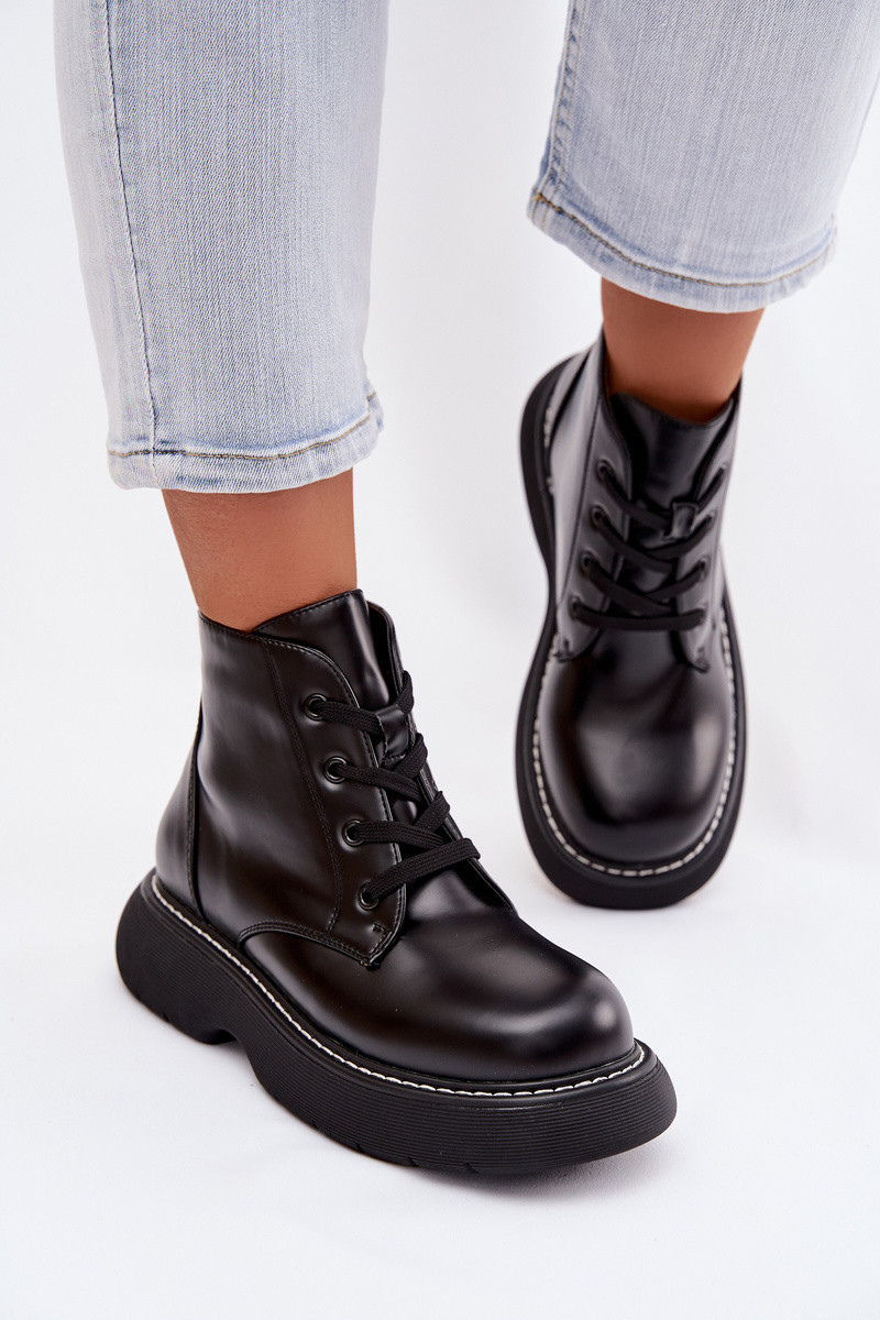 aquecimento Botas femininas com uma plataforma com atacadores cor preta Harmine