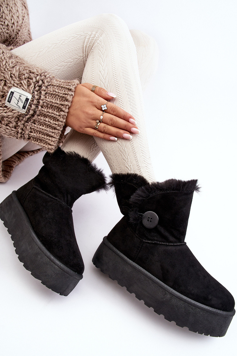 Botas femininas de neve com plataforma e pelinho na cor preta INikasem