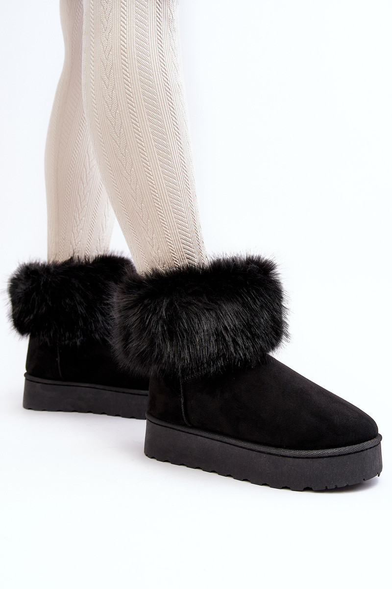 Feminino Botas de neve com uma plataforma com um casaco de pele cor preta Tem que serncy