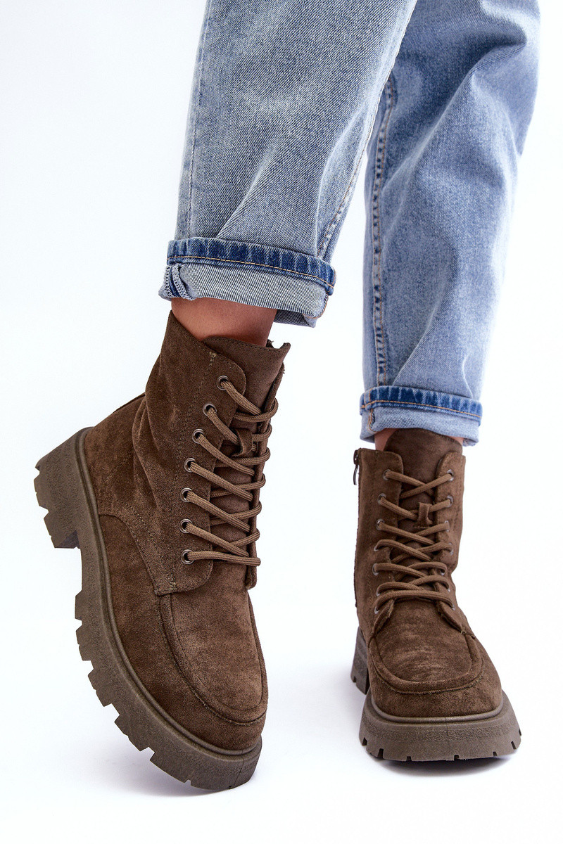 Sapatos de camurça sapato aquecimento com salto largo cor cáqui Zikey