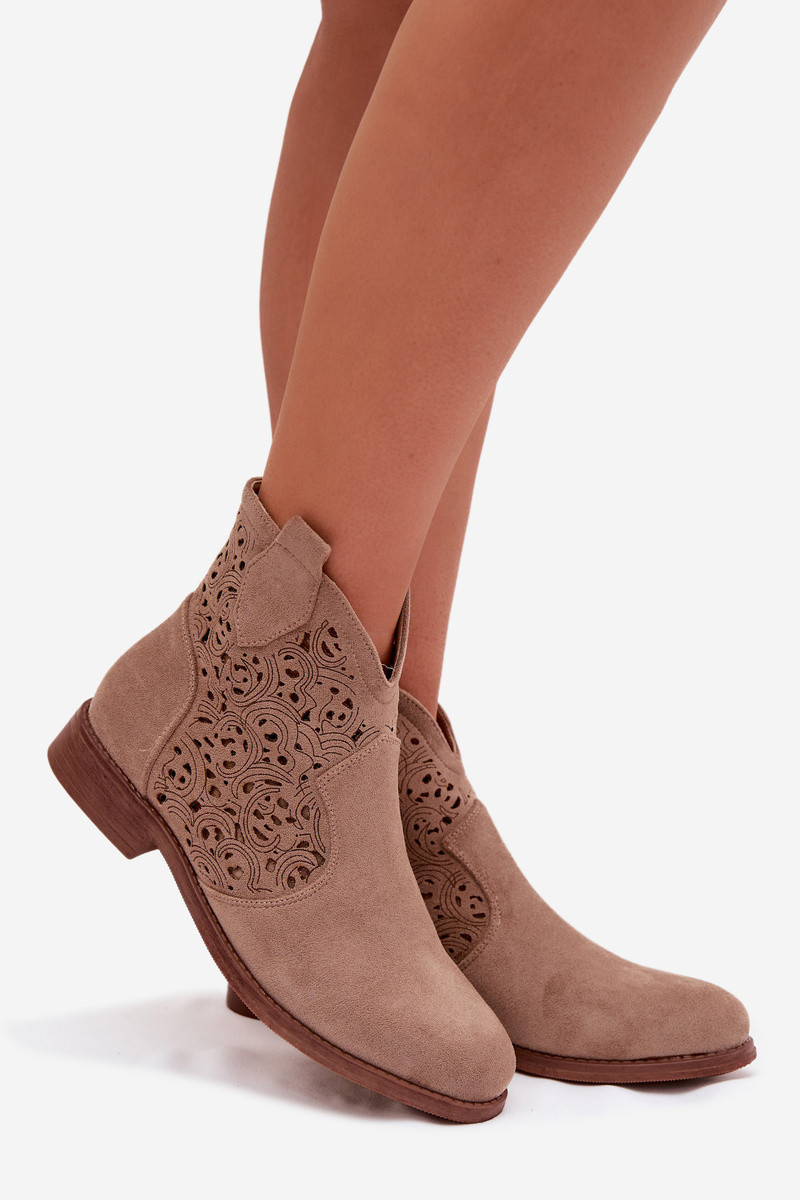 Botins femininos com salto largo S.Barski HY61-8026 na cor areia
