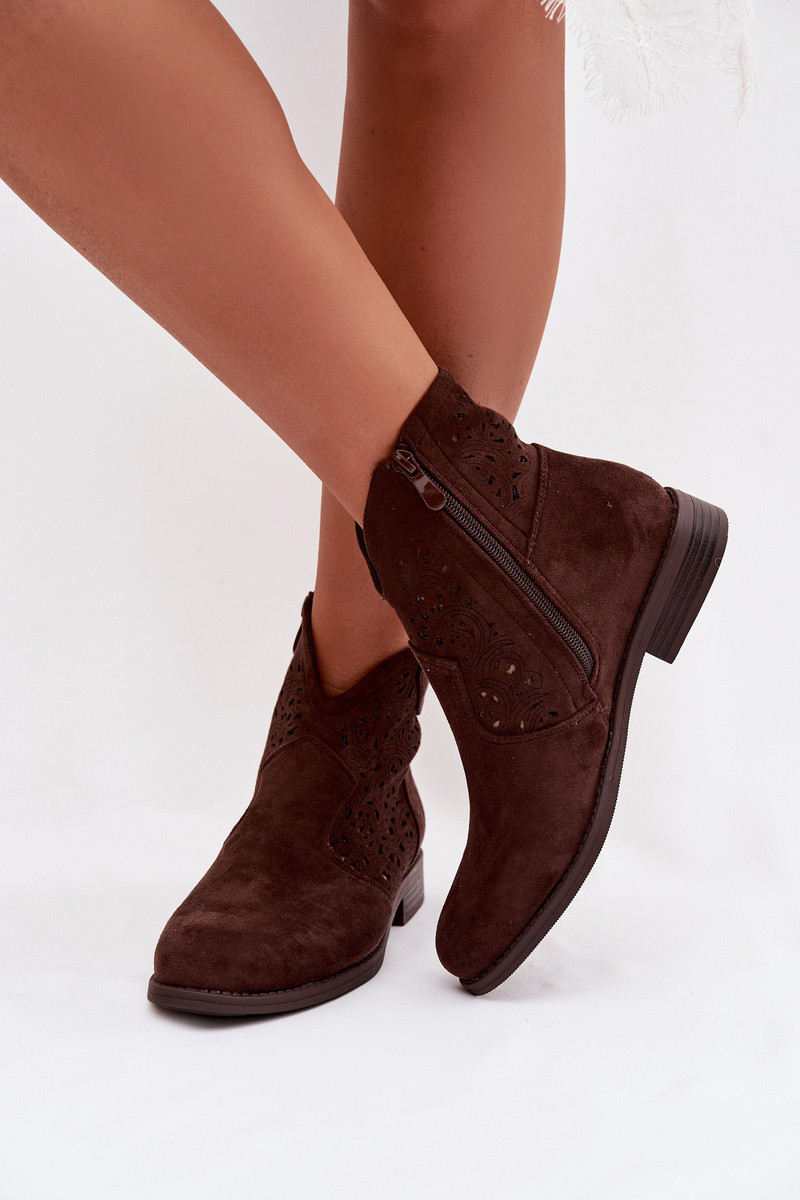 Botins femininos com salto largo S.Barski HY61-8026 na cor chocolate