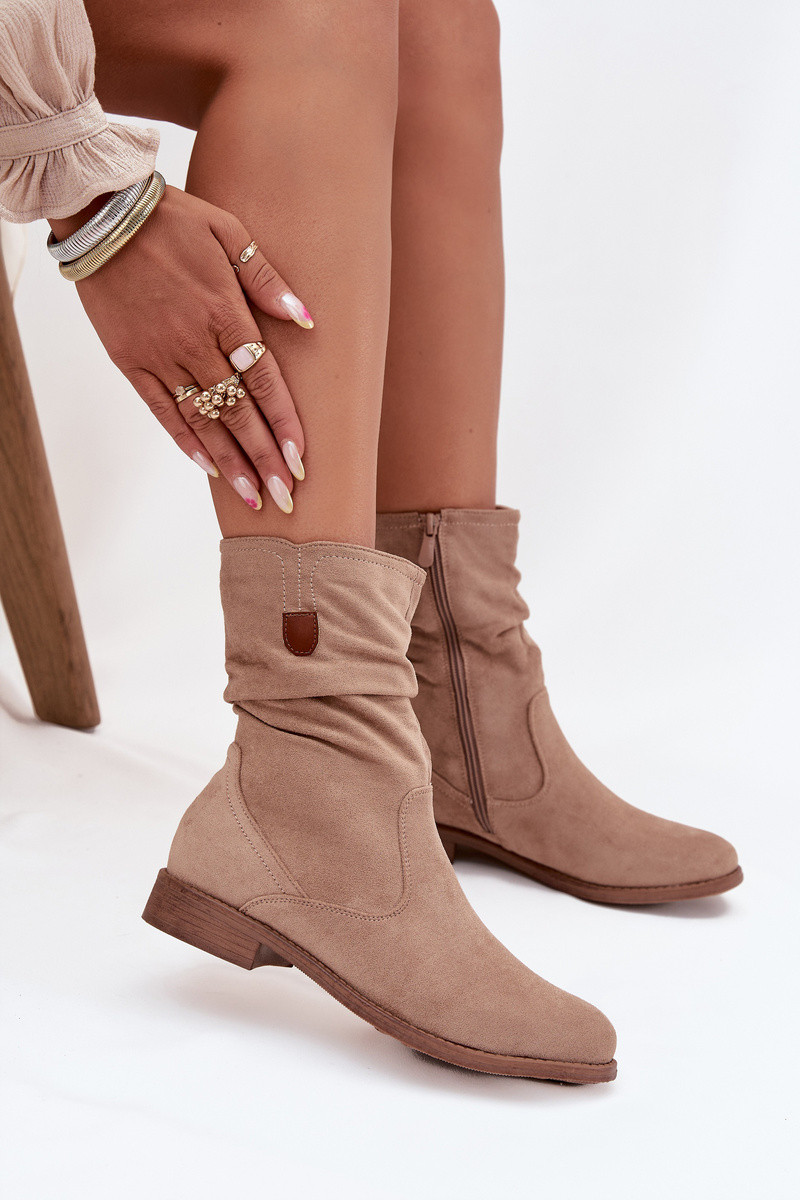 aquecimento Botas femininas Com top enrolado com salto largo bege Krisia