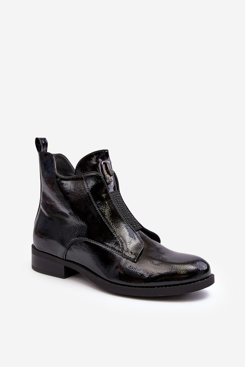 Botas femininas de cano curto com efeito de verniz e saltos largos forradas na cor preta S.Barski HY75-120