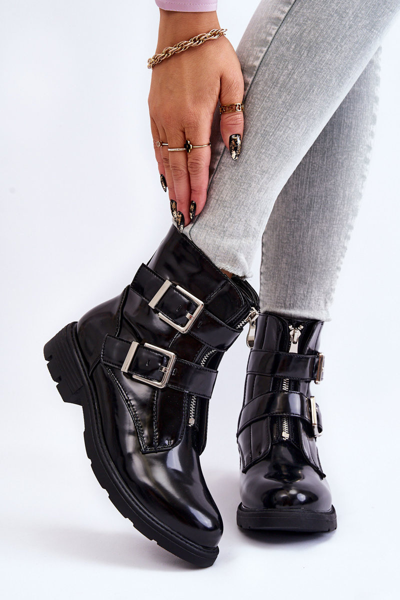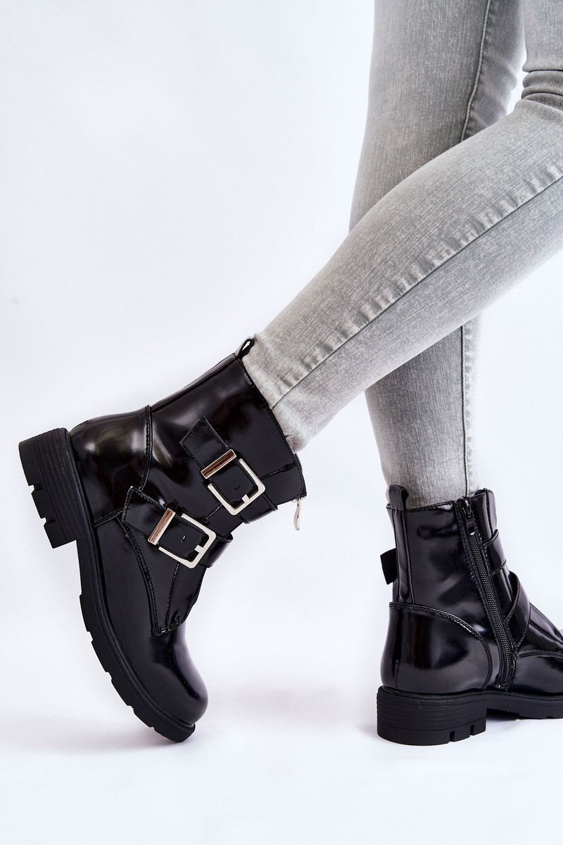 Feminino aquecimento Botas com salto largo com zíperes cor preta Joshie