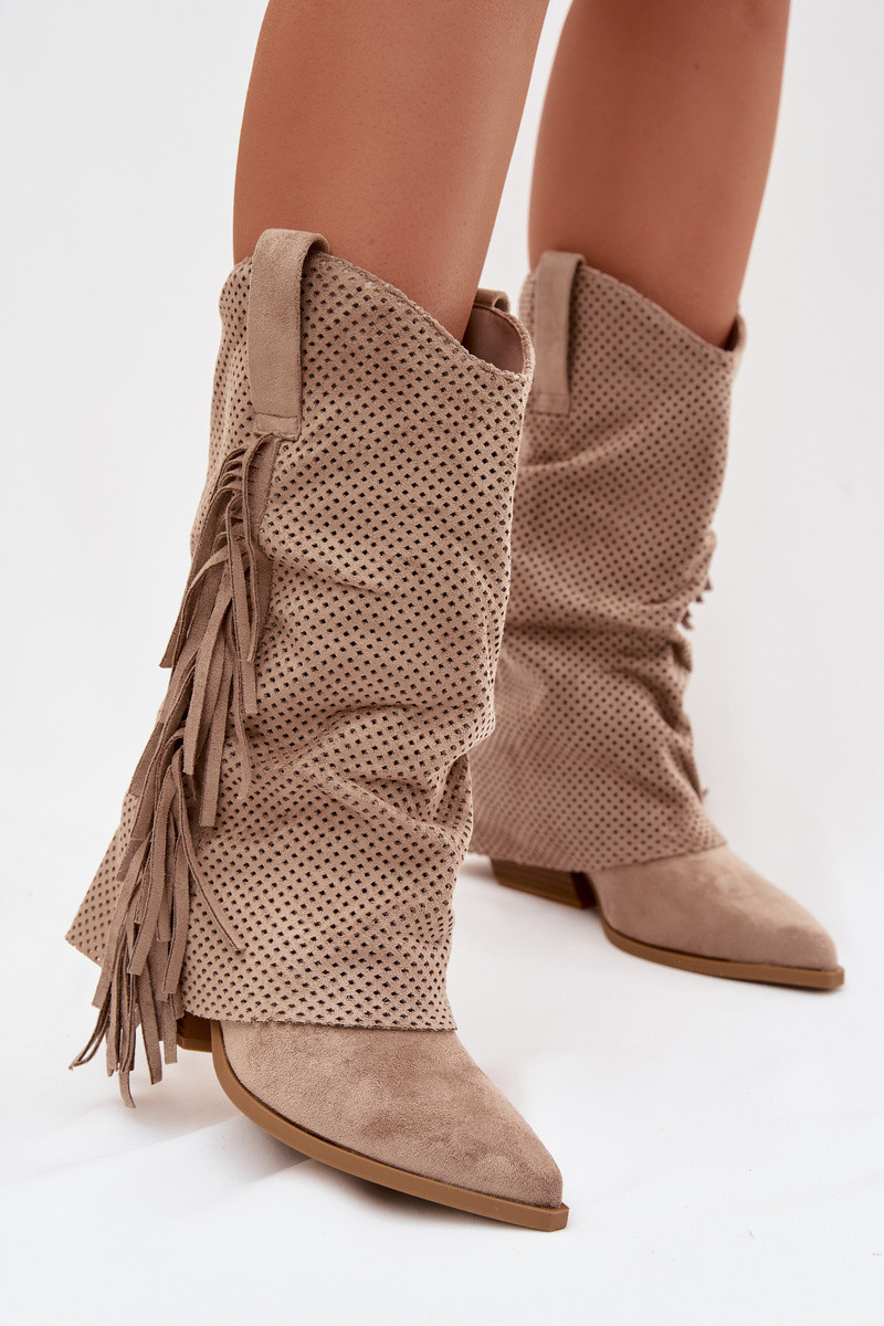 botas estilo coParaboy com franjas com salto bege Pireya