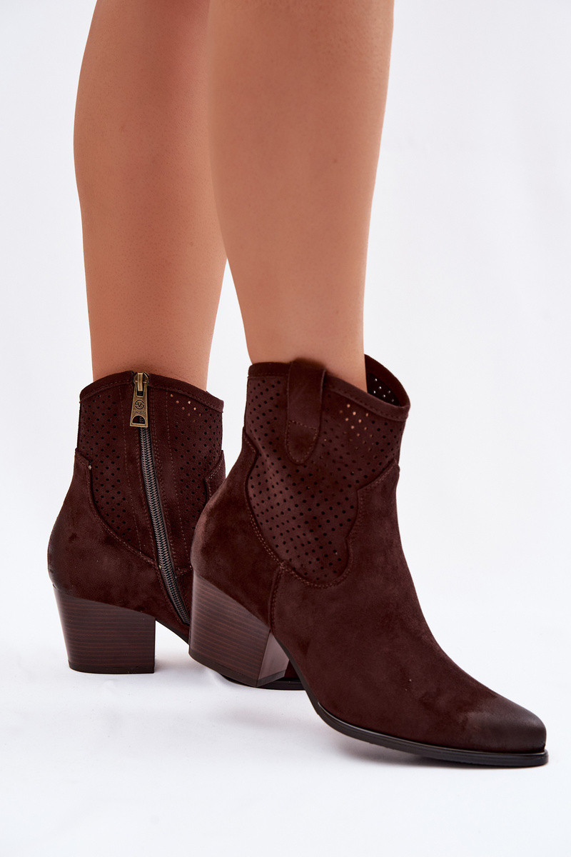 Botas a céu aberto estilo vaqueiro Feminino com salto Vinceza 58150 CzekoladoParae