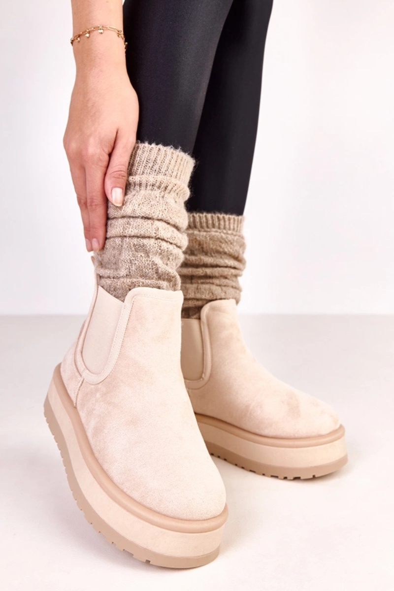 Um modelo atraente botas estilo coParaboy FemininoHabilitadoturalnego de camurçau bege...