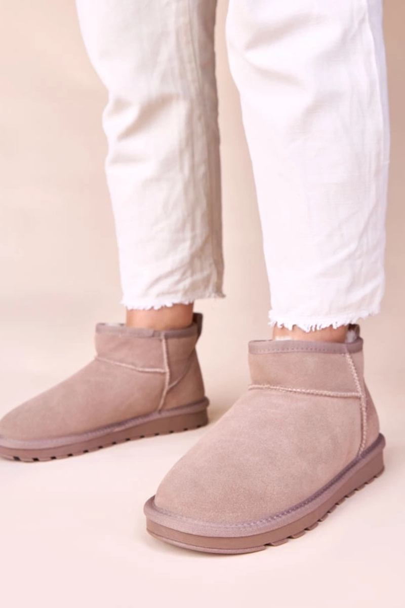 Botas de neve cinzas de camurça natural, aquecidas com pelagem Matilda