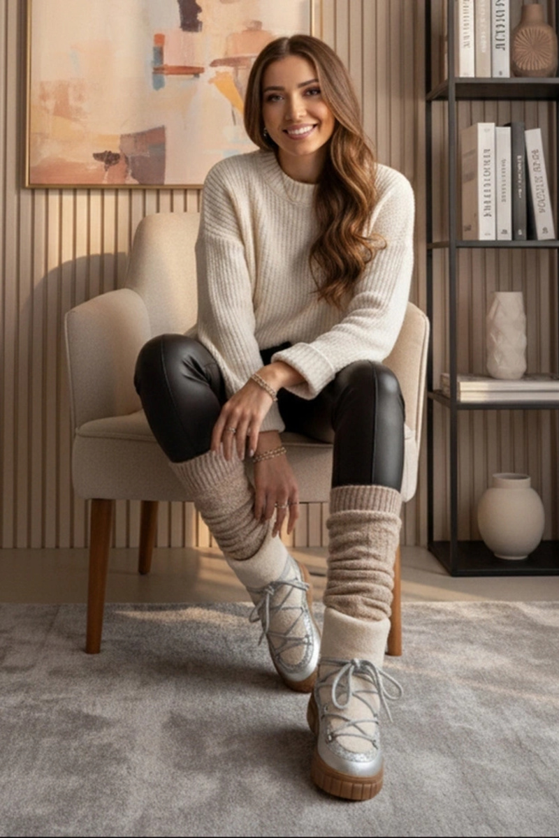 Botas de neve quentes prateadas com pele e brilhos Esmee