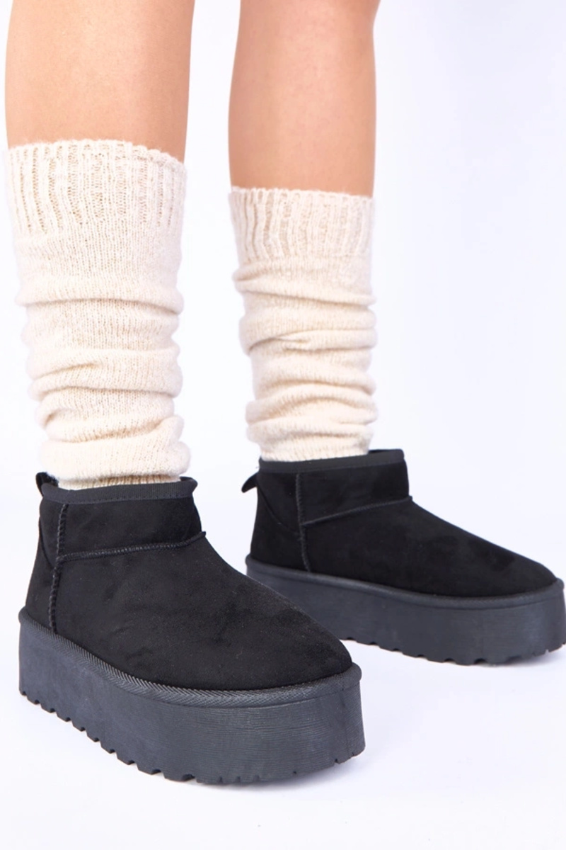Bota de neve plataforma preta forrada com pele Mouna