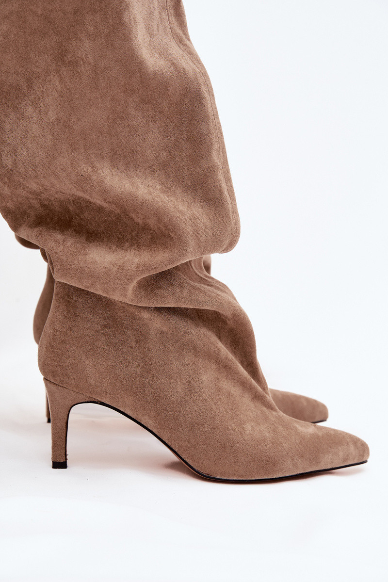 Botas longas femininas com saltos finos, modelo slip-on, cor areia Tai turivilla