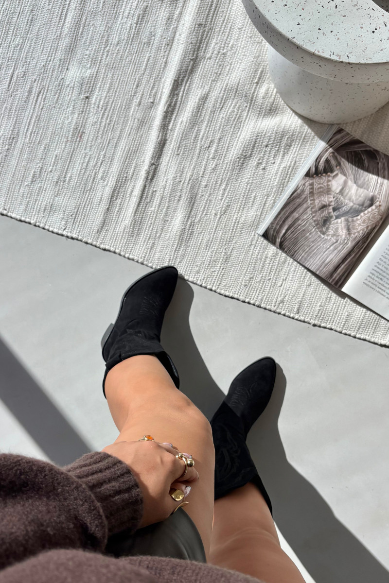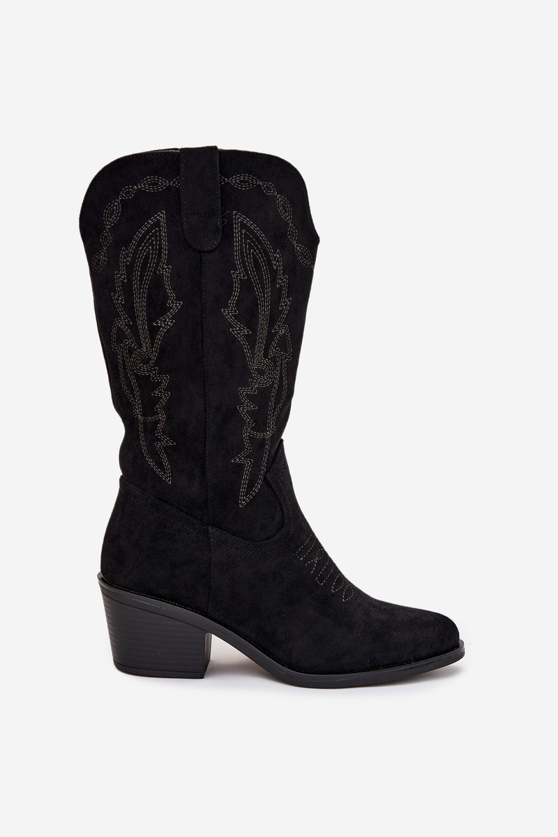 Botas femininas altas em estilo cowboy com saltos aquecidos Vinceza 16508 na cor preta