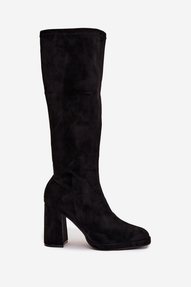 Bota feminina de cano alto com costuras em salto bloco na cor preta "Brivana"