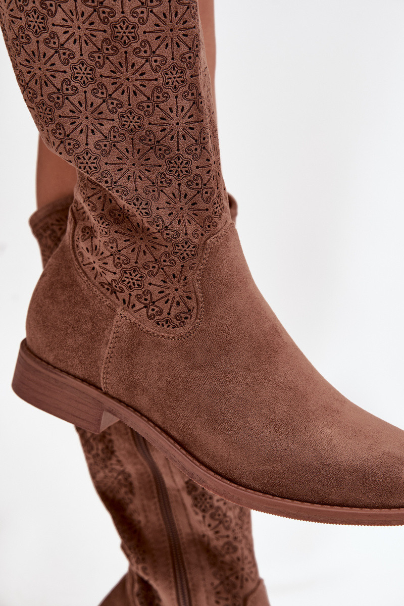 botas femininas com elementos abertos com salto largo S.Barski HY52-534 cor marrom