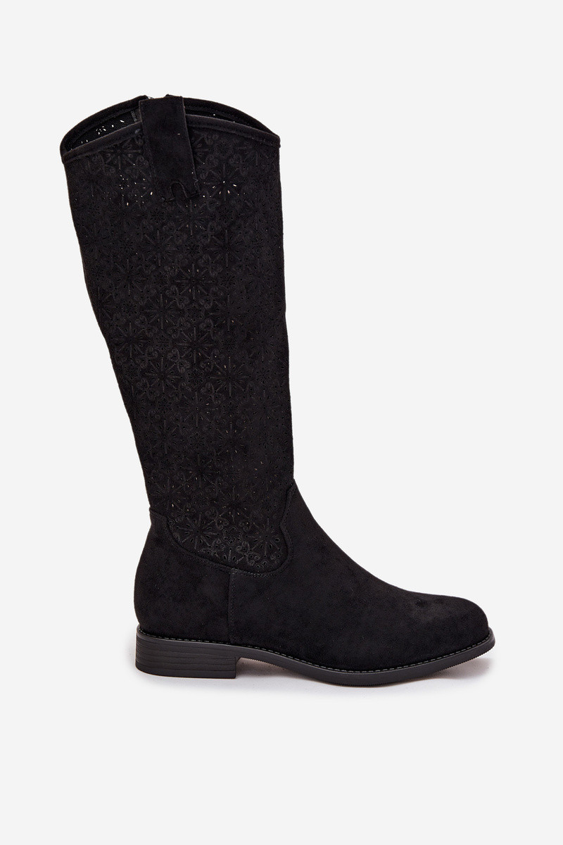 botas femininas com elementos abertos com salto largo S.Barski HY52-534 cor preta