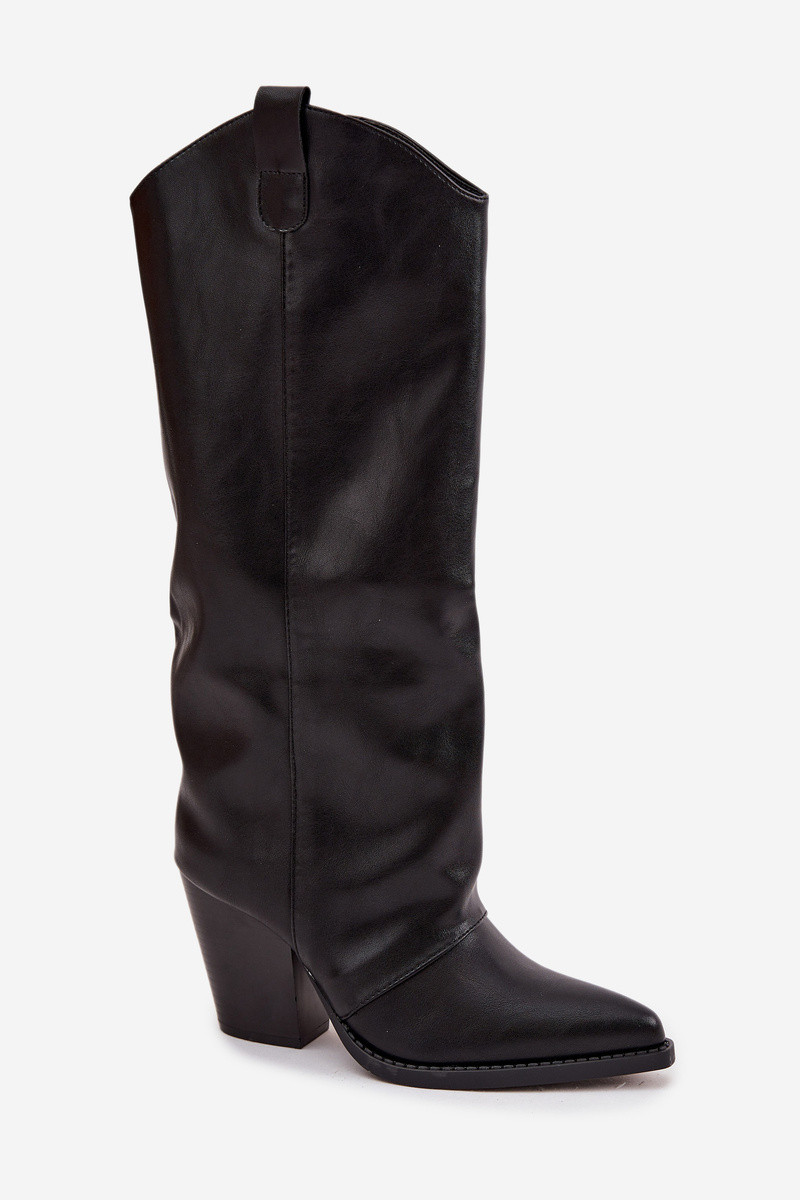 aquecimento botas estilo vaqueiro com salto de couro ecológico cor preta Tem que servine
